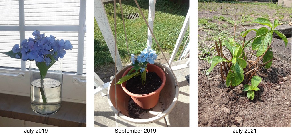 Eventually, I decided I should buy one for myself, but you know how it goes. Regret dampens your enthusiasm. Times passes. You think of it, but there’s no time for the extra errand. You have no time to clear a spot in the garden. There are no blue hydrangeas in stock. There’s a global pandemic.